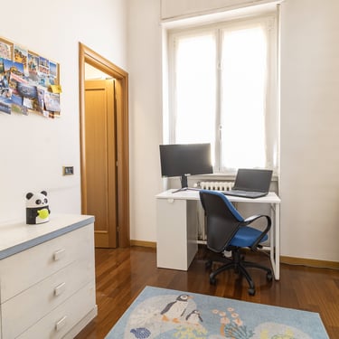 Il parquet originale e i doppi infissi conferiscono calore e comfort acustico.