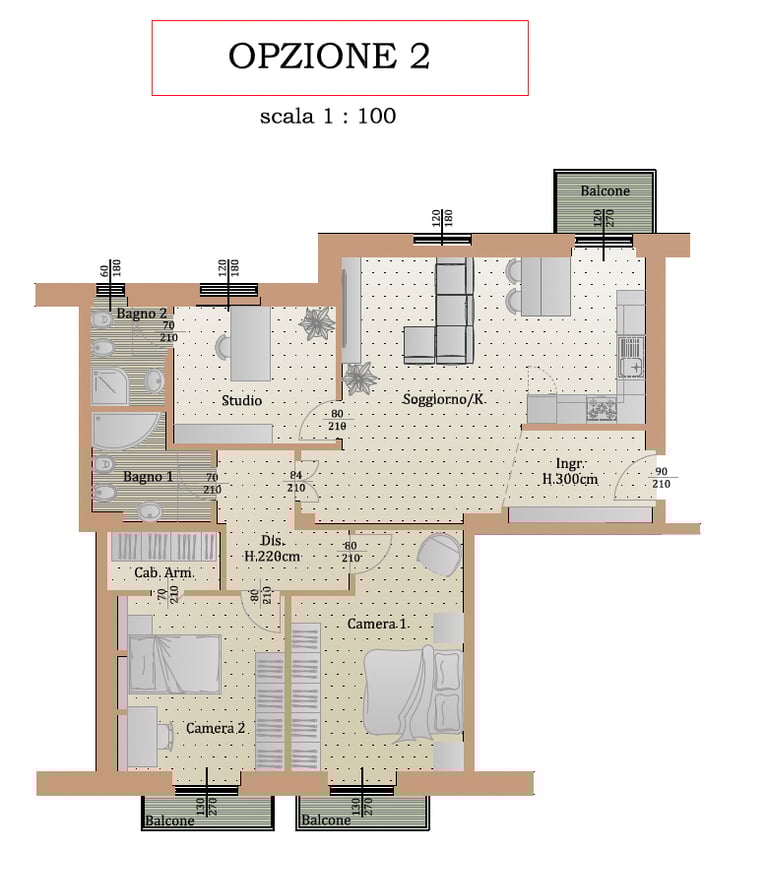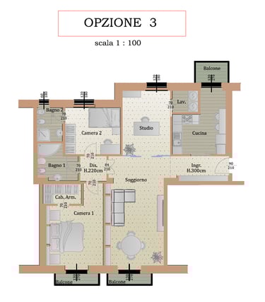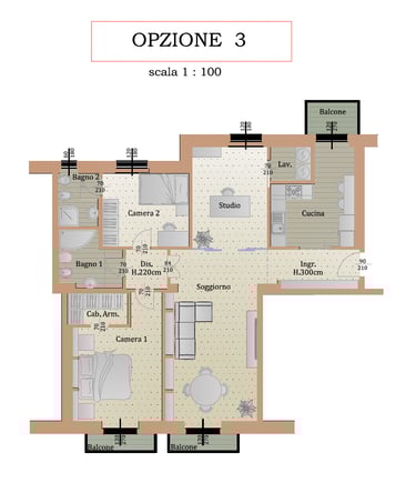 Personalizzazione: L'immobile è in buono stato, ma si presta a una facile ridistribuzione degli spazi. Abbiamo già predisposto ipotesi di progetto per ricavare una terza camera o uno studio moderno.